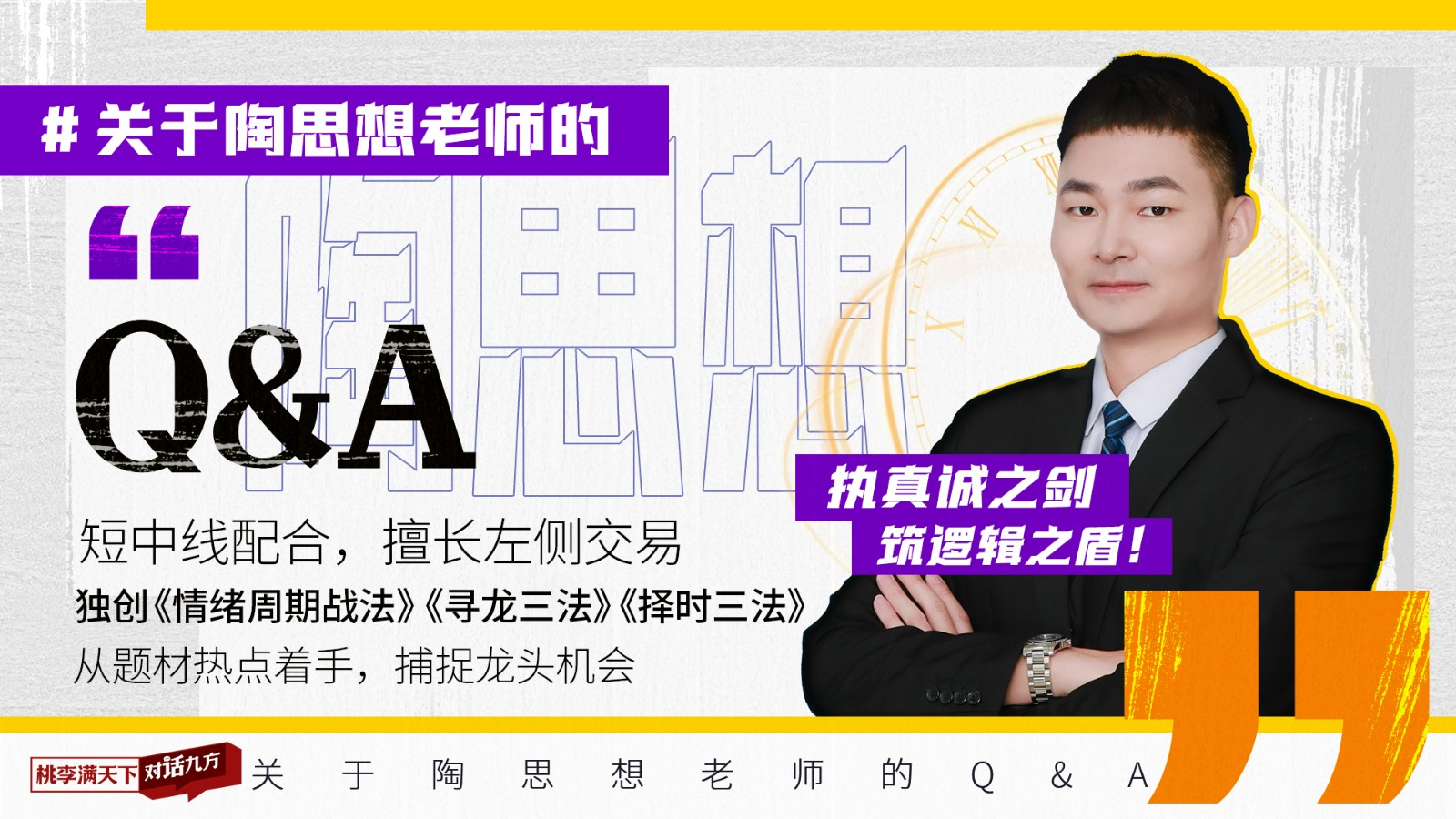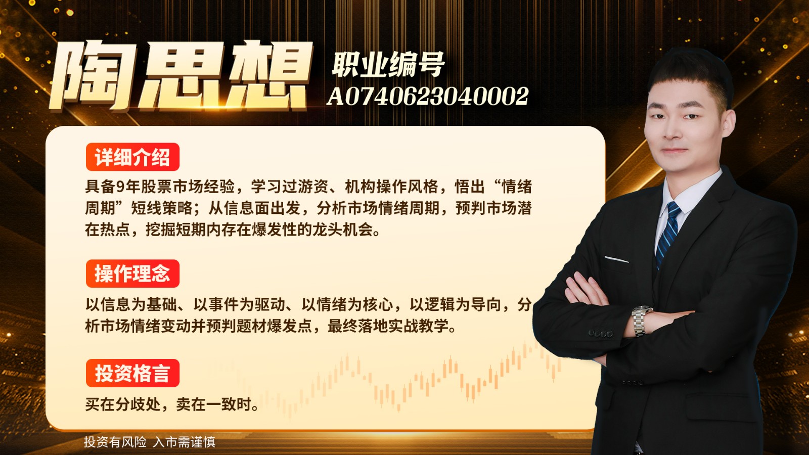 陶思想:这个就是我的风格,单刀直入,市场瞬息万变,尤其是在短线题材上,需要我们具备敏锐的洞察力和扎实的知识储备。而且我始终坚信,以真心换真心,真诚待人才能得到更多尊重。