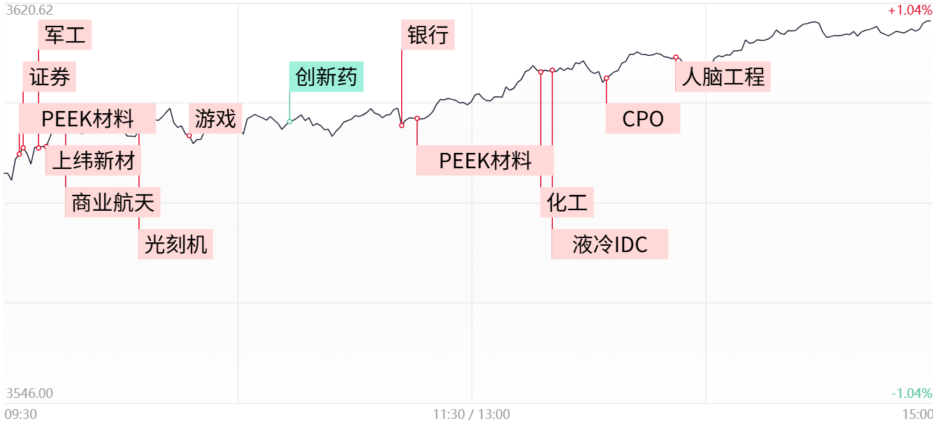 今日市场震荡反弹,三大指数全线收涨,其中沪指涨近1%,重返3600的同时,再度创下年内收盘新高,后续沪指或有望挑战3636这一近期高点。但需注意的是,在沪指强势反弹的背后仍存在两大隐忧:其一仍是成交额,今日量能虽有所放大,但也仅仅只有1.6万亿,显然以目前的量能水平是不足以支撑指数持续向上冲高的,因此量能是否跟进放大仍是后续关注的重点;其二,近两日银行股对于沪指的托举效果较为明显,但其余热点题材依旧维持快速轮动结构,导致延续性均相对一般。但指数若想向上冲关的话,仍需决出更为明确的领涨核心方向去进一步打开市场高度。而在此之前仍先以震荡结构看待当下盘面为宜,应对上寻找分歧整理过程中的低吸套利机会。