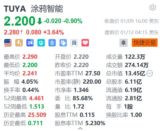 美股异动 | 涂鸦智能盘前涨超3% 发布其首款AI宠物陪伴概念产品Aura机器人
