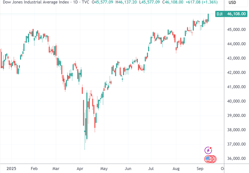 昨夜今晨,伴随着大致符合预期的美国8月CPI和展现就业降温的初请数据,美联储下周降息的所有障碍已经全部扫清。美股三大指数齐步再创历史新高,道指历史首次站上46000点。