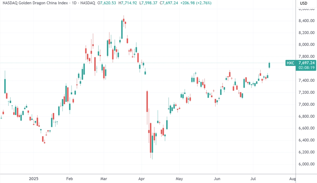 (纳斯达克中国金龙指数日线图,来源:TradingView)