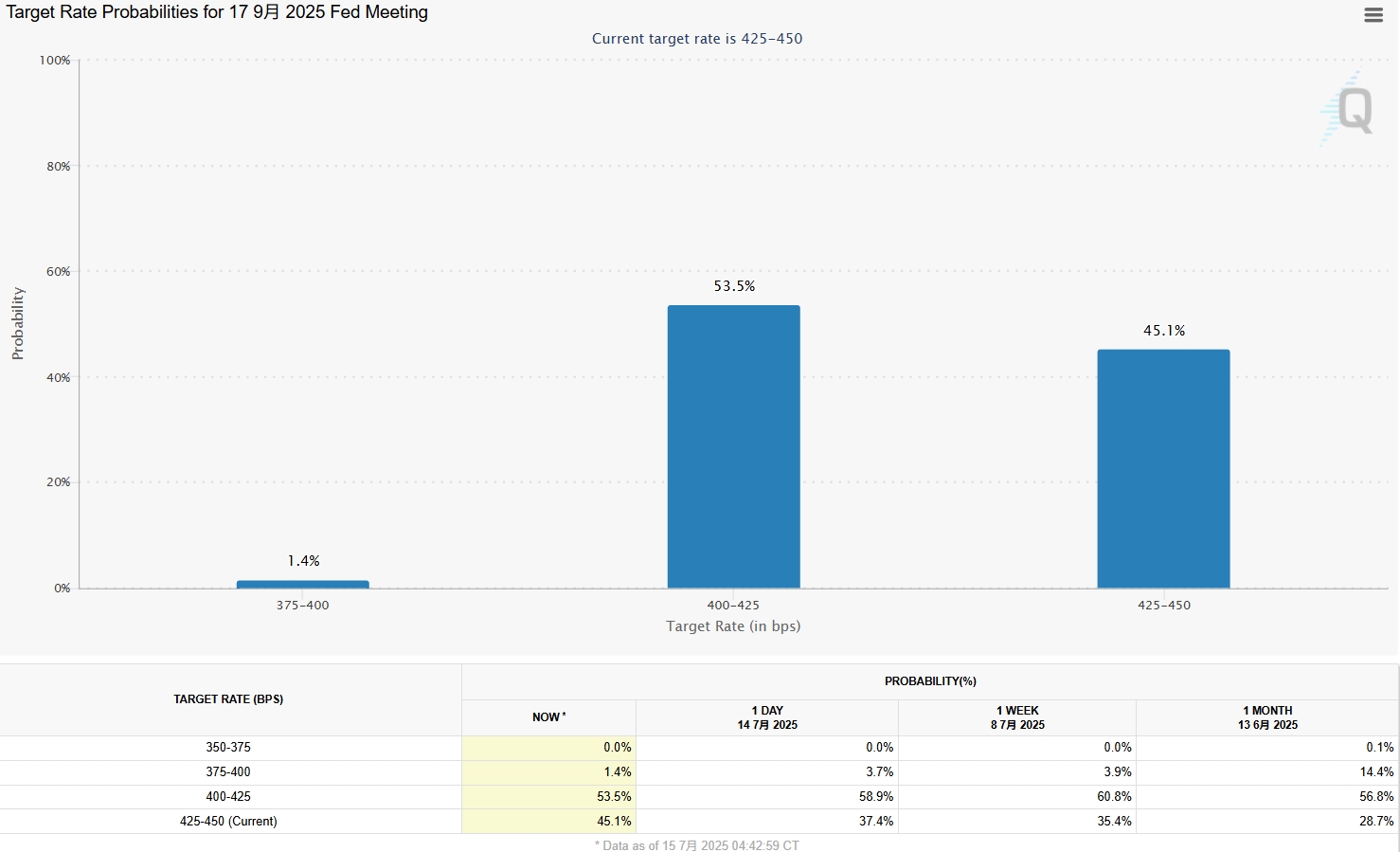 最新通胀数据公布后,“美联储观察”工具显示,交易员们对美联储9月降息的预期概率下降至略超5成。