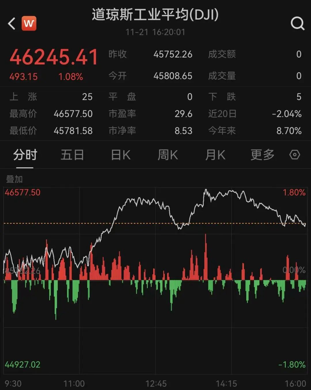 美国三大股指全线收涨,道指涨1.08%,标普500指数涨0.98%,纳指涨0.88%。消息面上,美联储官员暗示有再次降息的可能性。而特朗普最新发声,称乌克兰总统泽连斯基必须同意美国支持的乌克兰和平计划。