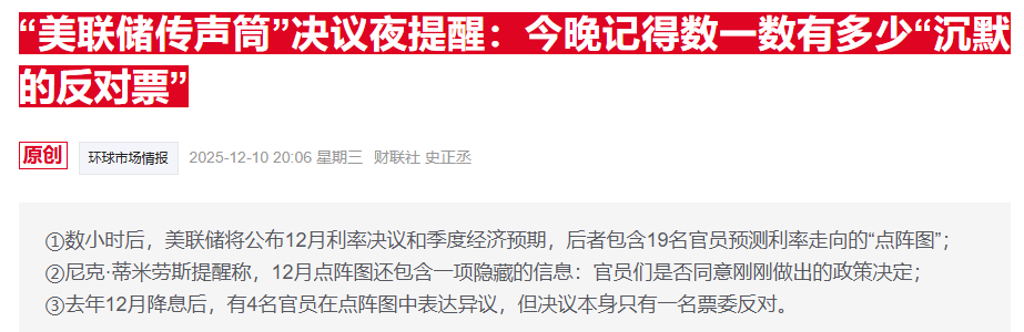 芝商所“美联储观察”工具显示,市场预计该行降息25个基点的概率为89.9%,按兵不动的概率仅为10.1%。除了决议,美联储还会发布经济预测摘要,包括对未来三年利率预测的“点阵图”。