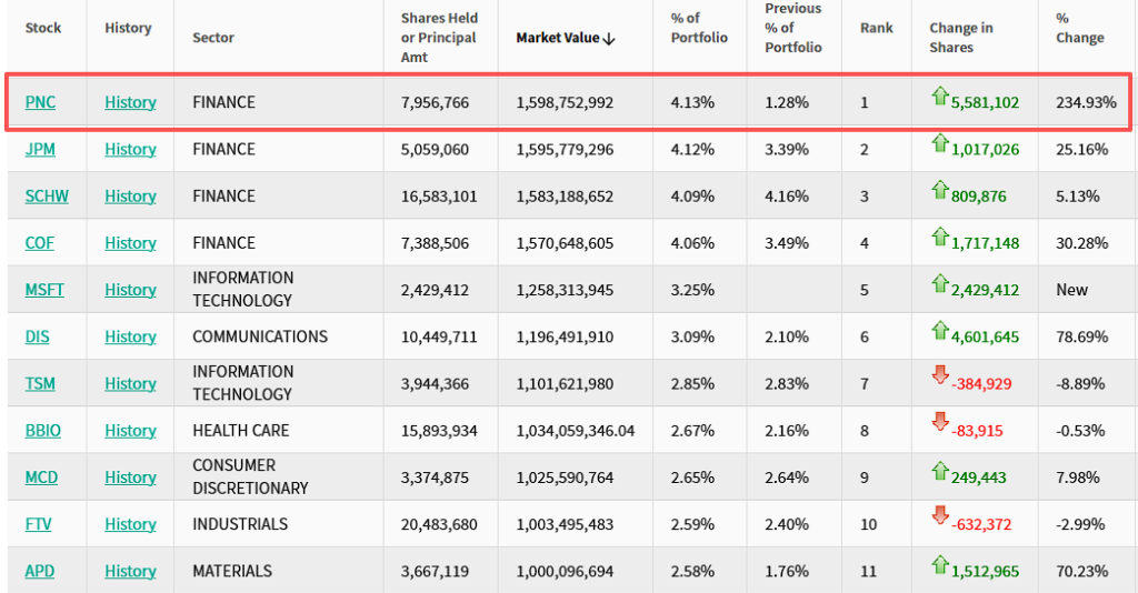 与“同门师兄弟”不同,Viking Global在三季度大举增持金融股。该基金将PNC金融服务集团的持仓增加两倍以上,达到近800万股,使其成为Viking的最大持仓。