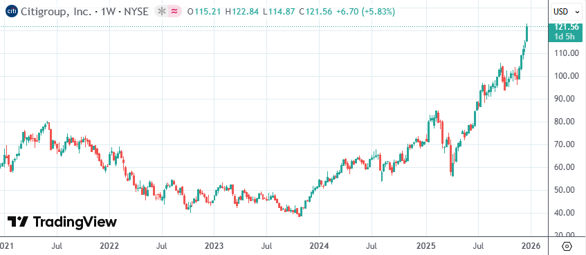 在六大美国银行中,花旗集团股价表现最佳,年内已累涨77%,股价升至2009年以来的最高水平。该行多年来精简业务、削减成本的改革正逐步见效。