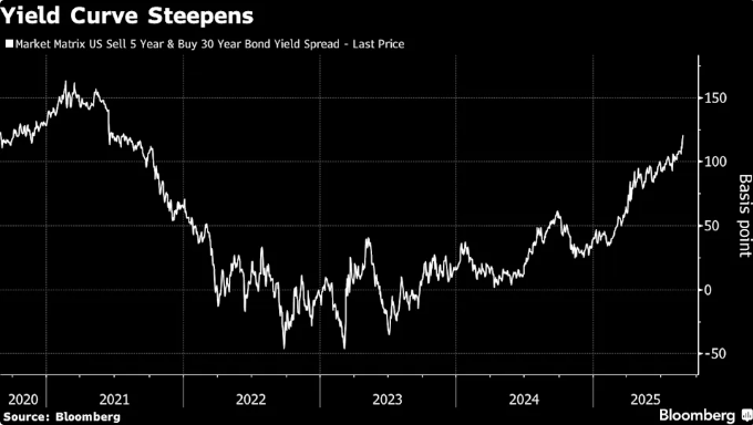 该策略团队于五月启动这项被称为“曲线陡化交易”的操作——预计特朗普减税法案将推高政府债务,从而拉高长期国债收益率。