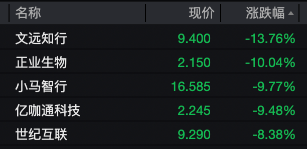 热门中概股多数下跌。纳斯达克中国金龙指数跌2.05%。文远知行跌超13%,小马智行跌近10%,富途控股跌超7%,奇富科技、哔哩哔哩跌超5%,金山云、BOSS直聘跌超4%,小鹏汽车、满帮等跌超3%,腾讯音乐、京东等跌逾2%。