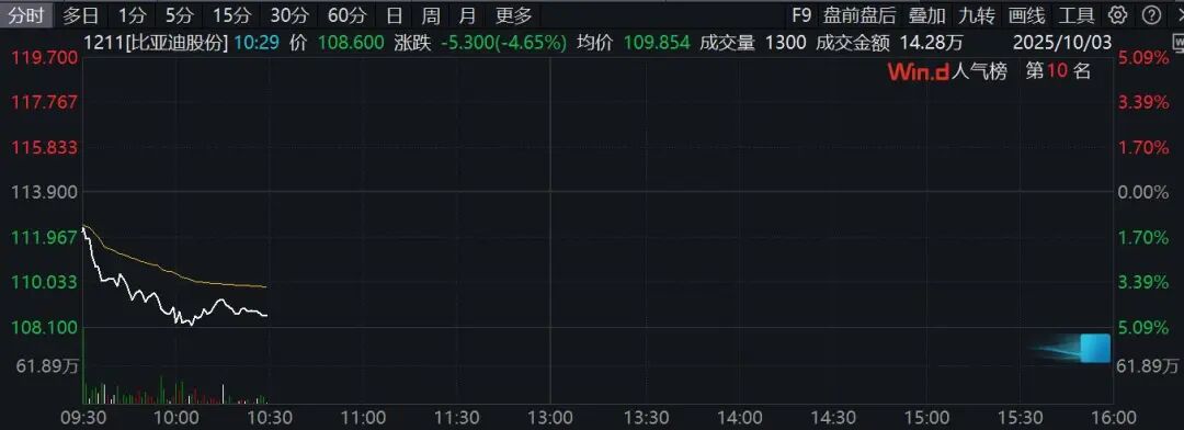 此前在10月1日,比亚迪公布9月产销快报。数据显示,比亚迪9月全球共销售新能源车396270辆,同比下滑5.5%,这是自2024年2月以来,时隔19个月首次单月同比转负。