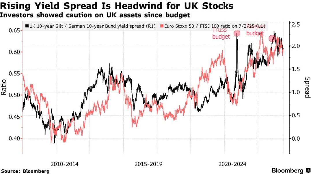 更令人担忧的是,当前增长势头已显脆弱——市场对工党能否在不加剧财政压力的前提下刺激经济增长缺乏信心,增税或扩大政府借款的预期持续升温,进一步延长英国债市压力周期。叠加英国中央银行对降息的谨慎态度,投资者对英国经济及股市前景的疑虑难以消散。