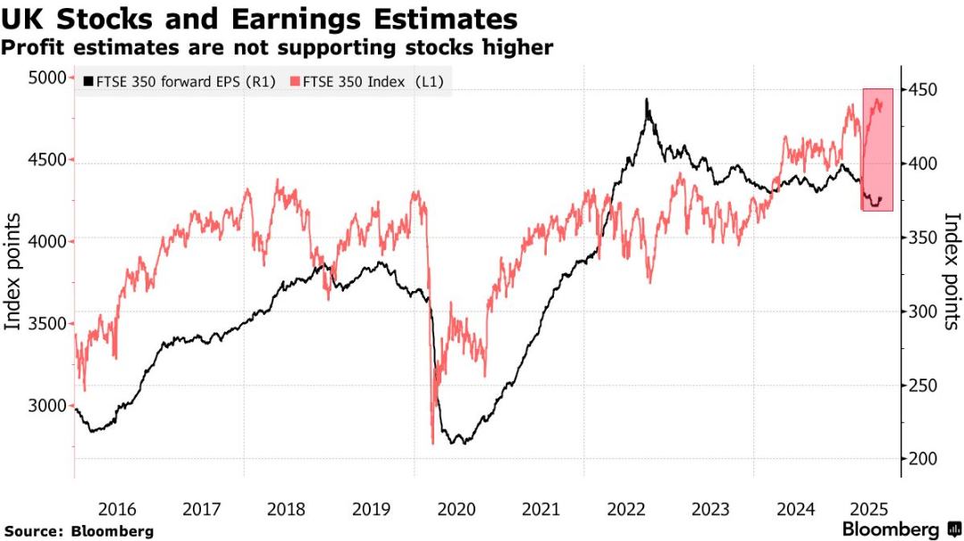 机构投资者态度持续冷淡:6月美国银行基金经理调查显示,全球投资者对英国资产净减持4%,与5月持平;花旗集团策略师团队(由贝娅塔·曼泰领衔)更将英国评级从"增持"下调至"中性",指出"英国曾是有效的地缘风险对冲工具,但当前盈利增长乏力且估值不再极度便宜"。