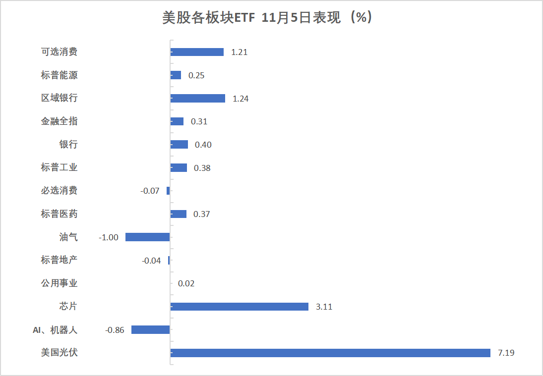 航空业ETF收涨4.5%,和半导体ETF领跑美股行业ETF,标普电信板块涨超1.6%。