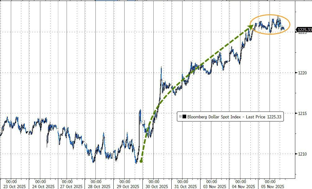 彭博美元指数跌0.08%,报1225.05点,日内交投区间为1227.08-1224.82点。