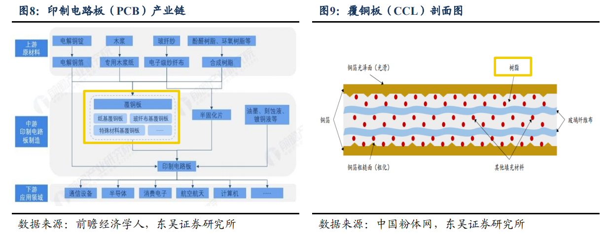 电子树脂作为电子通信行业的基础材料,通常与铜箔和玻璃纤维布一同供给覆铜板CCL厂商进行配方匹配与制板工艺开发。主要CCL厂商包括台光电子、台耀科技、生益科技、韩国斗山等。