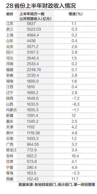 地方政府相继披露上半年财政账本,折射经济运行总体平稳,不过财政收支依旧呈现紧平衡态势。