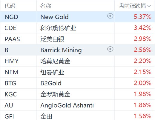 美股异动丨黄金股盘前集体上涨,科尔黛伦矿业涨超3%