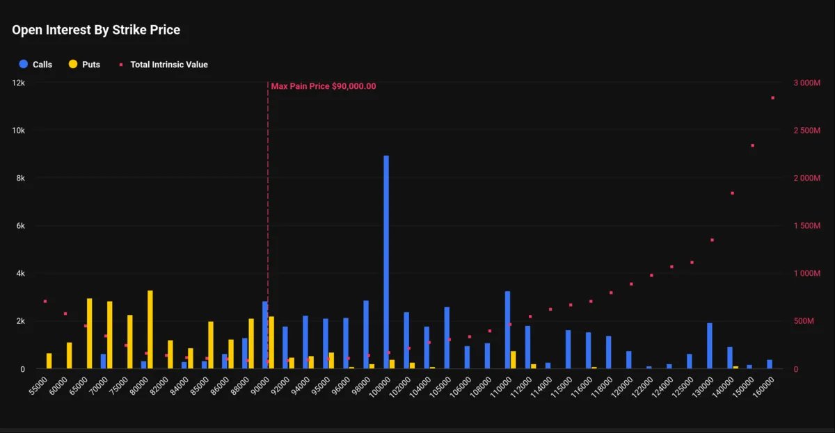 Magadini表示,期权仓位显示,价格将迅速上涨至 9 万美元以上后,下一个“暂停点”在 10.5 万美元。
