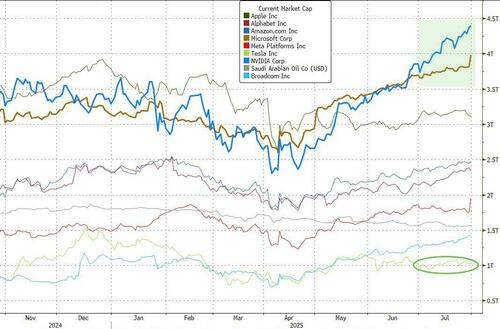 英伟达的市值在7月惊人地增长了7000亿美元,成为了全球首家迈过4万亿市值门槛的公司,而微软市值也一度在周四盘中越过了该里程碑门槛。