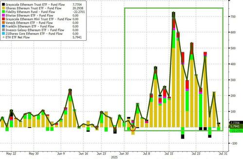 以太坊7月份更是飙升逾50%,为2022年7月以来表现最好的一个月,整个月仅有一天出现了以太坊ETF资金流出。