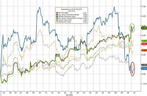 在美国主要股指里,道琼斯运输业平均指数是当月表现最差的主要股指,而大型科技股的飙升则推动纳指领涨,目前已连续第四个月走出阳线……