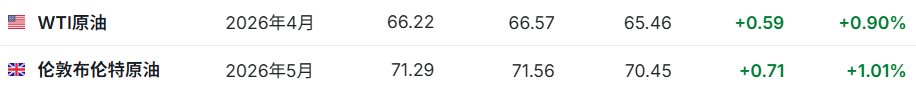 3. 截至发稿,WTI原油涨0.90%,报66.22美元/桶。布伦特原油涨1.01%,报71.29美元/桶。