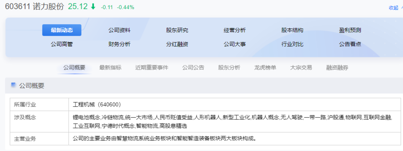 今天为大家带来的是诺力股份,我们先来了解一下这家公司是做什么的,我们通过公司概要可以清楚的看到:公司所属行业是工程机械。