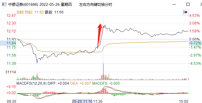 其实,除了眼观以外,要有技术上的参考,这个时候,我们经常需要用到一个分时的传统技术指标叫MACD。