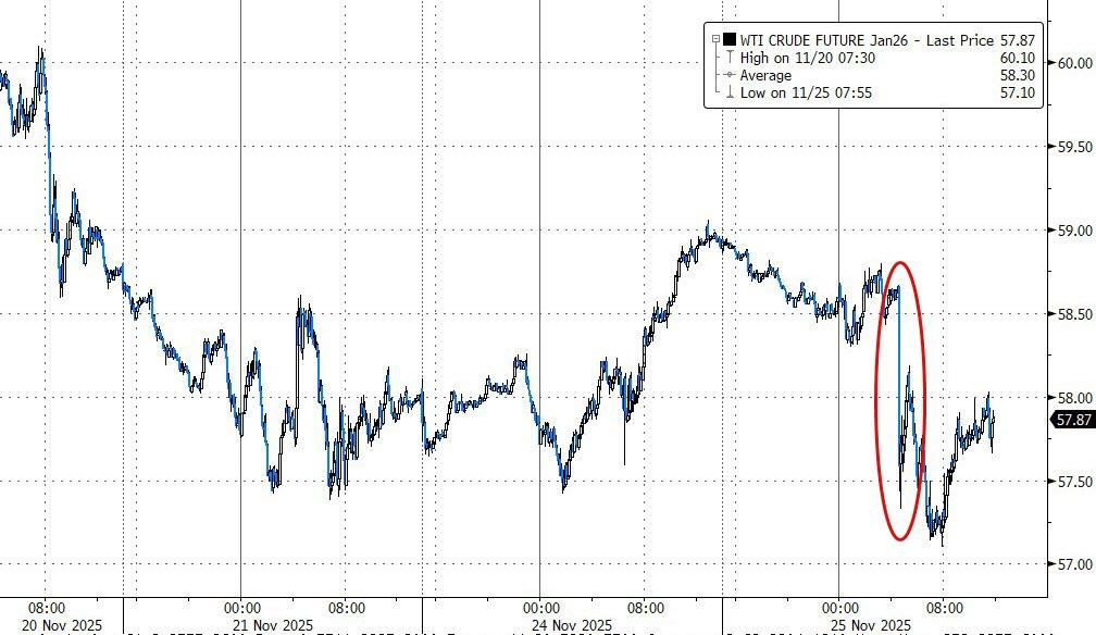 - 美股盘前,据央视报道,乌克兰已同意和平协议条款,消息导致国际油价短线下挫,WTI原油跌破58美元关口。
