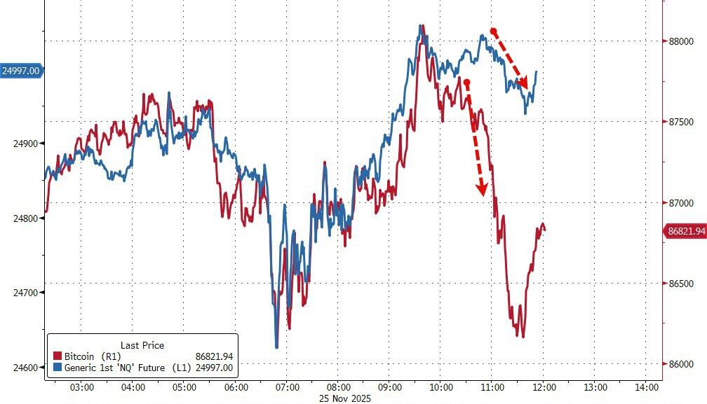 纽约尾盘,CME比特币期货BTC主力合约较周一纽约尾盘跌2.35%,报87080美元。