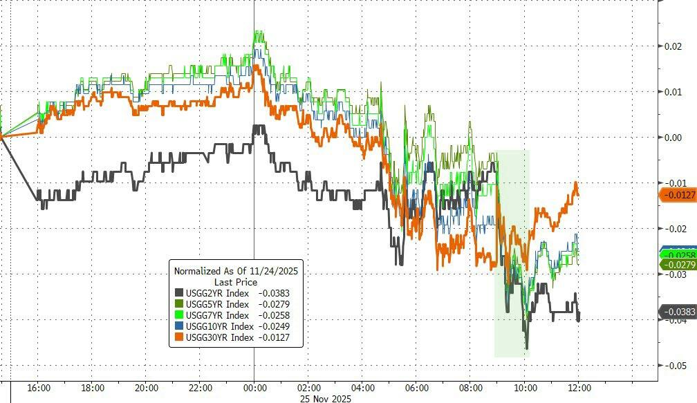 两年期美债收益率跌超4个基点,报道称哈塞特在美联储主席候选人中领先优势明显。
