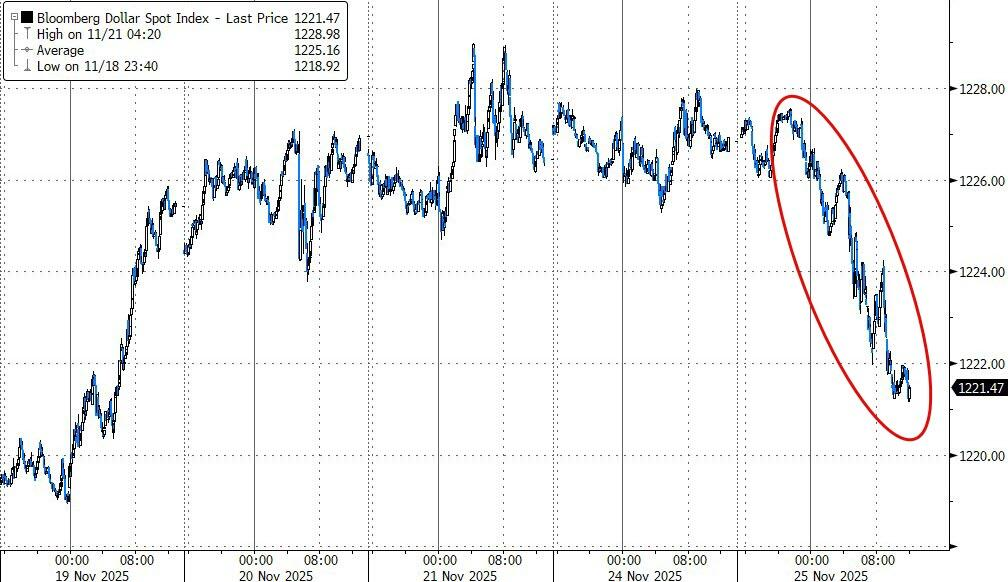 彭博美元指数跌0.38%,报1222.17点,日内交投区间为1227.56-1221.15点。