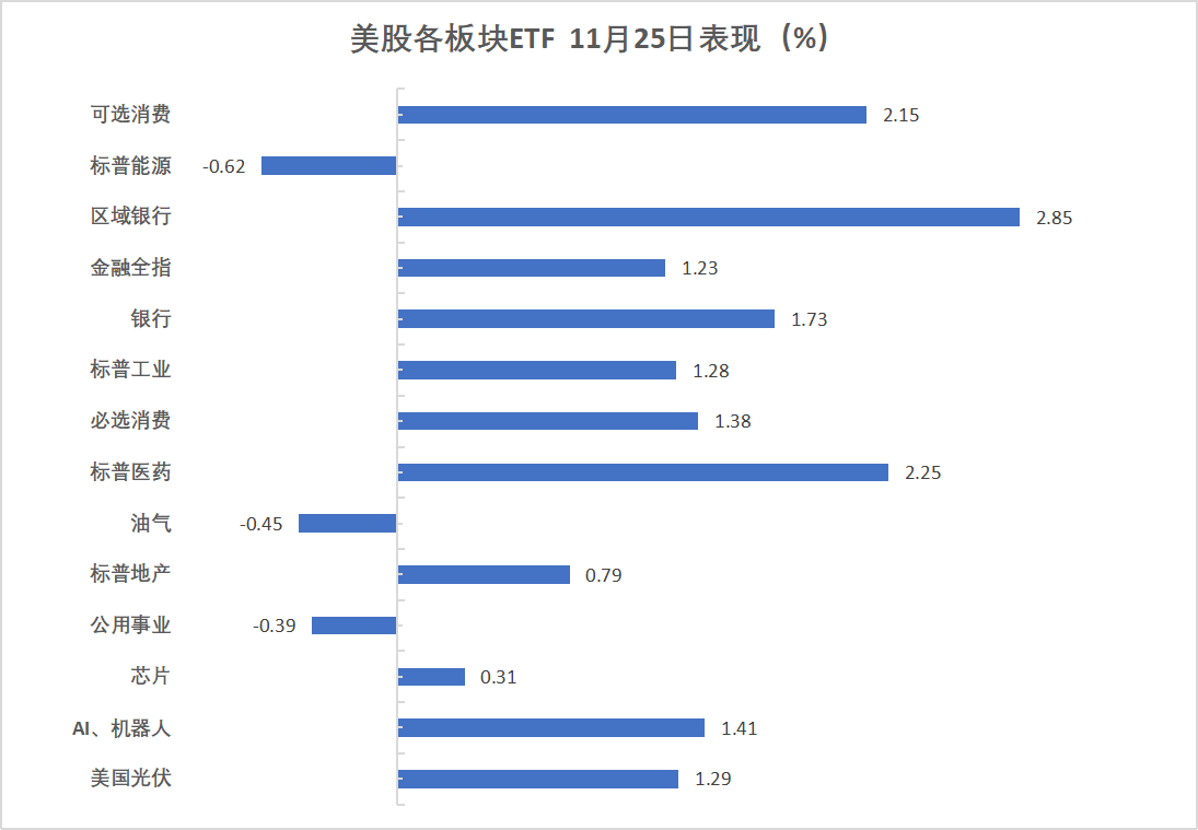 区域银行ETF收涨2.84%,全球航空业ETF涨2.80%,银行业ETF涨2.74%,可选消费ETF涨2.14%。