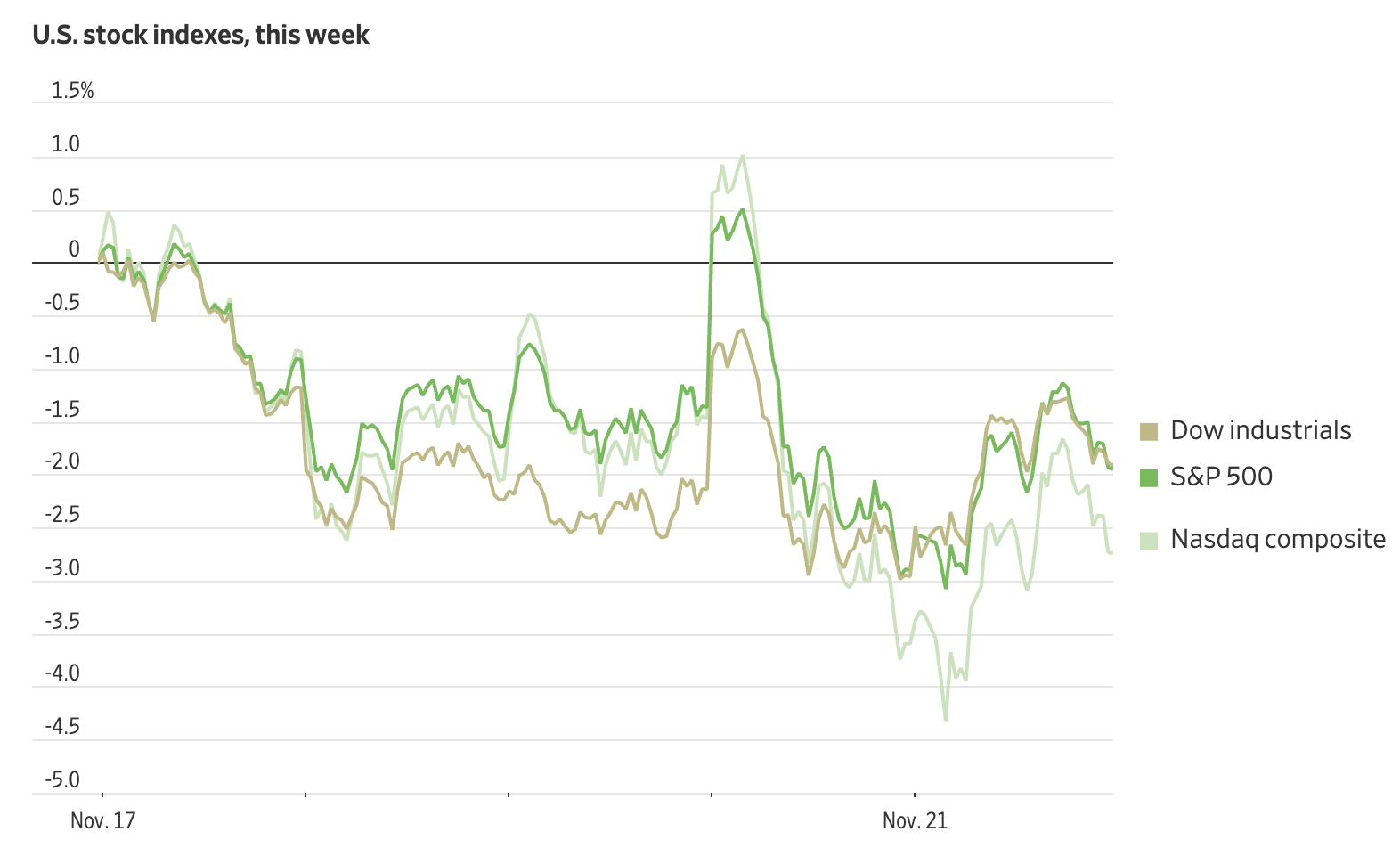 周五的反弹仍不足以弥补本周之前的大跌。纳指本周累计跌2.74%,标普500指数跌1.95%,道指跌1.91%。