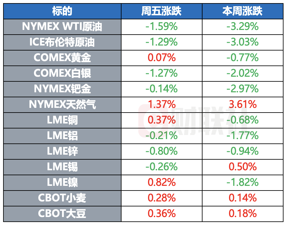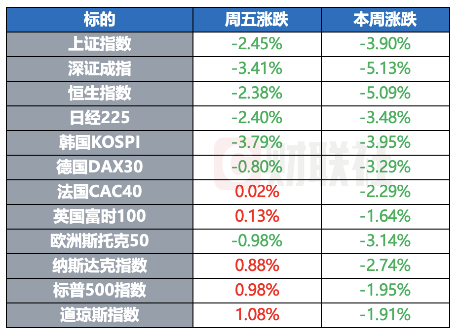 纳指本周累计跌2.74%,标普500指数跌1.95%,道指跌1.91%。