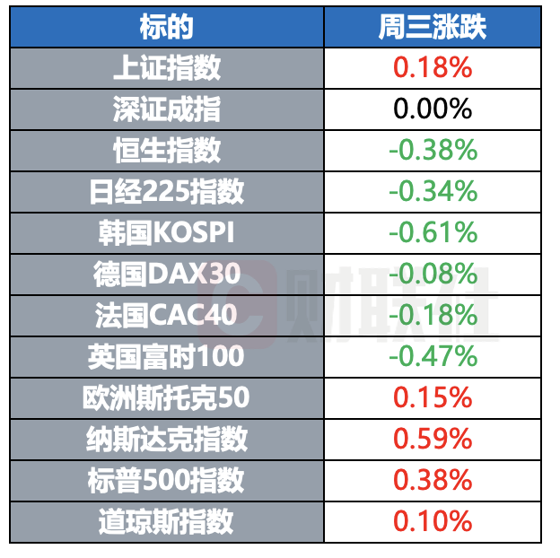 全球主要指数周三多数上涨,美股市场在连跌四日后迎来反弹,三大指数集体收涨。