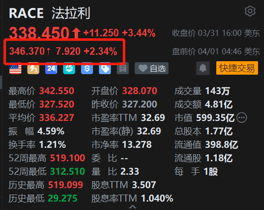 美股异动丨法拉利盘前续涨2.3% 杰富瑞上调其评级至“买入”升目标价至400美元