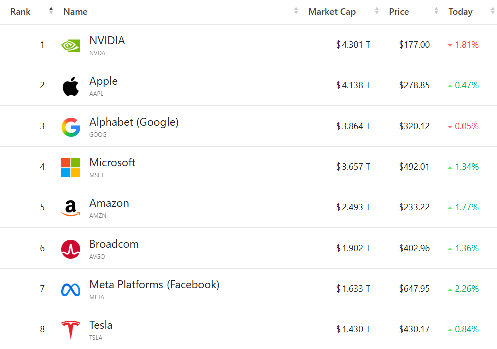 大型科技股多数走高,(按市值排列)英伟达跌1.81%。苹果涨0.47%,谷歌C跌0.05%,微软涨1.34%,亚马逊涨1.77%,博通涨1.36%,Meta涨2.26%,特斯拉涨0.84%。