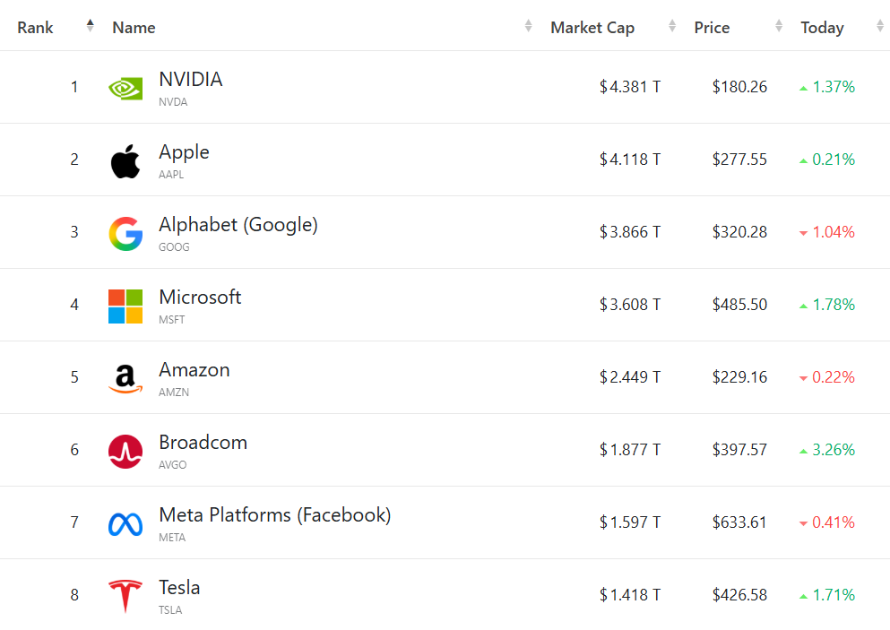 大型科技股涨跌不一,英伟达涨1.37%,苹果涨0.21%,谷歌C跌1.04%,微软涨1.78%,亚马逊跌0.22%,博通涨3.26%,Meta跌0.41%,特斯拉涨1.71%。