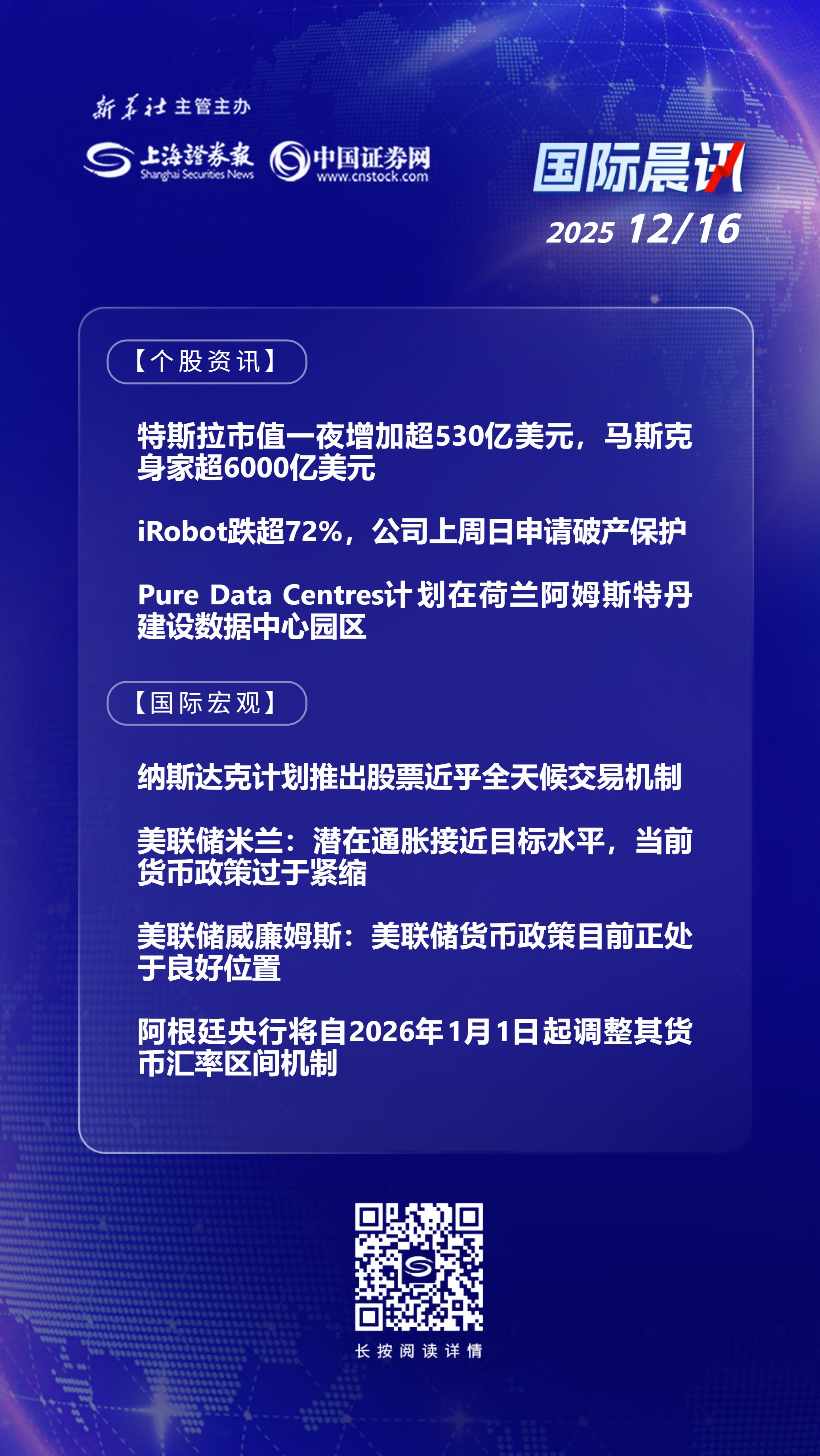 12月16日国际晨讯 | 马斯克身家超6000亿美元 纳斯达克计划推出股票近乎全天候交易机制