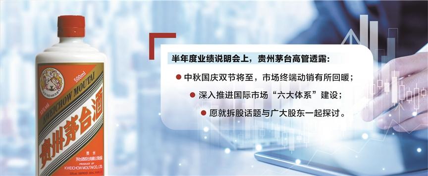 会上,贵州茅台高管透露出三大信息:中秋国庆双节将至,市场终端动销有所回暖;进一步深化客群、场景、服务“三个转型”,深入推进国际市场“六大体系”建设;高度重视投资者回报,愿就拆股话题与广大股东一起做探讨。