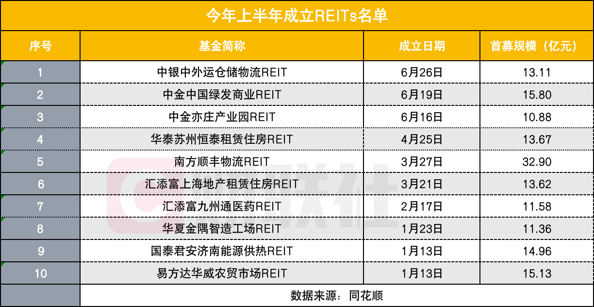 不过从上半年的新成立REITs名单来看,后入局者也正在积极追逐。