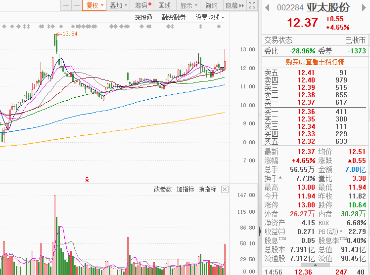 亚太股份是汽车智能控制的龙头股,并有具身智能(人形机器人)概念,近1年股价随智能汽车热点炒作和需求的井喷顺势上升(优于大市),阶段性底部逐步抬高,当前股价和估值对比业绩预期仍处于低估区间,后市增长空间巨大,十大流通股东中有多家外资、险资和公募机构的身影,深受游资和主力的喜爱,,市值不到100亿易炒作;近期在“中报高增”和“汽车行业稳增长”的利好催化下,震荡上行,且偶发大幅异动且放量数倍的成交额,各周期均线呈多头排列向上,股价站稳在各均线之上,技术面上金叉信号(5日MACD和10日MACD)已显现,股价有望进一步加速。