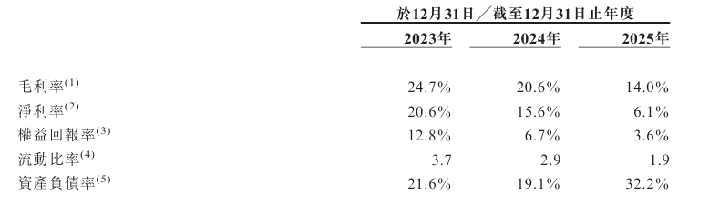 2023年、2024年、2025年,该公司毛利率分别为24.7%、20.6%、14%。