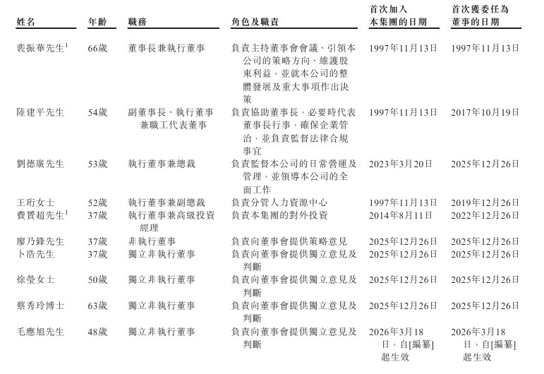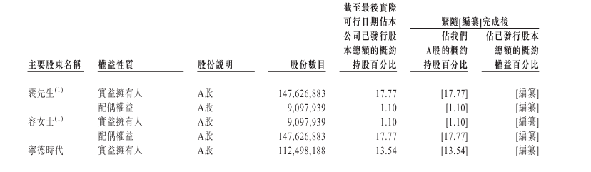 截至2026年3月25日,裴先生及容女士合共持有公司已发行股本约18.87%的权益,为公司单一最大股东集团。此外,宁德时代持有公司13.54%的股份。
