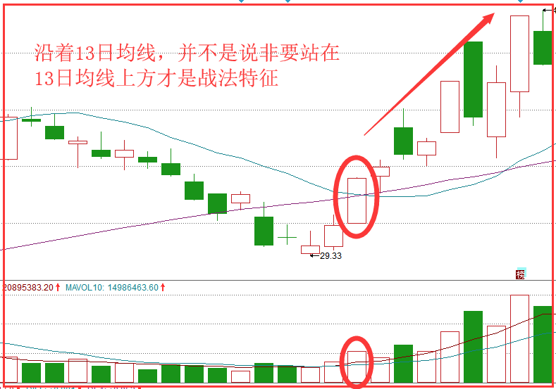 很多朋友看到案例一中,个股爆发之前的一段走势就会在想,是不是前期个股股价一定要在13日均线上方呢?
