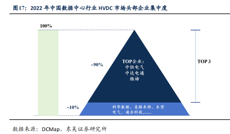当前海外HVDC数据中心供电技术应用仍以标杆性试验项目为主,市场由维谛和台达主导。