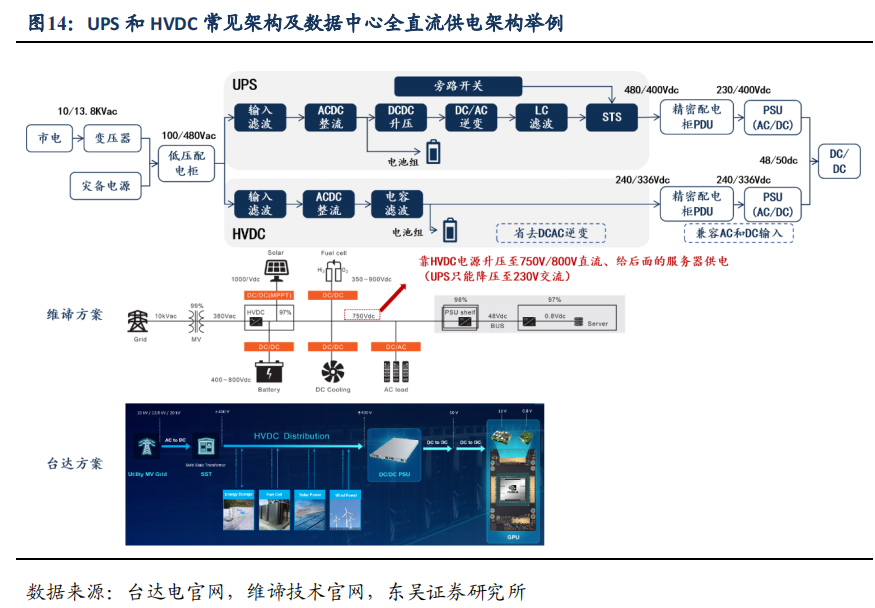 数据中心领域的规模化应用仍处于早期阶段,项目数量和进展或慢于国内。维谛和台达凭借技术积累和全球化布局占据核心地位。维谛近期与英伟达合作开发适配高功率AI服务器的HVDC整体解决方案,并成为Meta等海外互联网巨头的供应商。