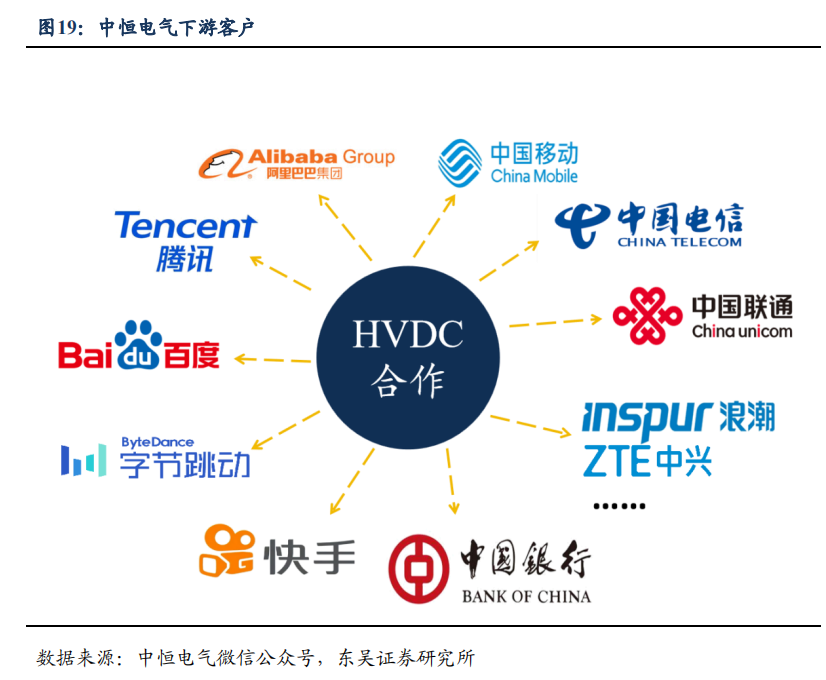 深耕供电系统,头部客户深度绑定。中恒电气聚焦绿色ICT基础设施、新型电力系统、低碳交通及综合能源服务等领域,与中国移动、阿里巴巴、国家电网、哈啰出行等各领域头部客户建立了深度的战略合作关系,产品畅销全国三十多个国家和地区。