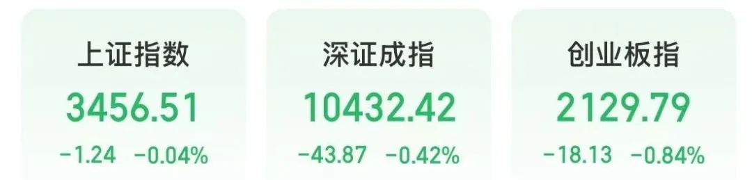 截至上午收盘,上证指数下跌0.04%,深证成指下跌0.42%,创业板指下跌0.84%。