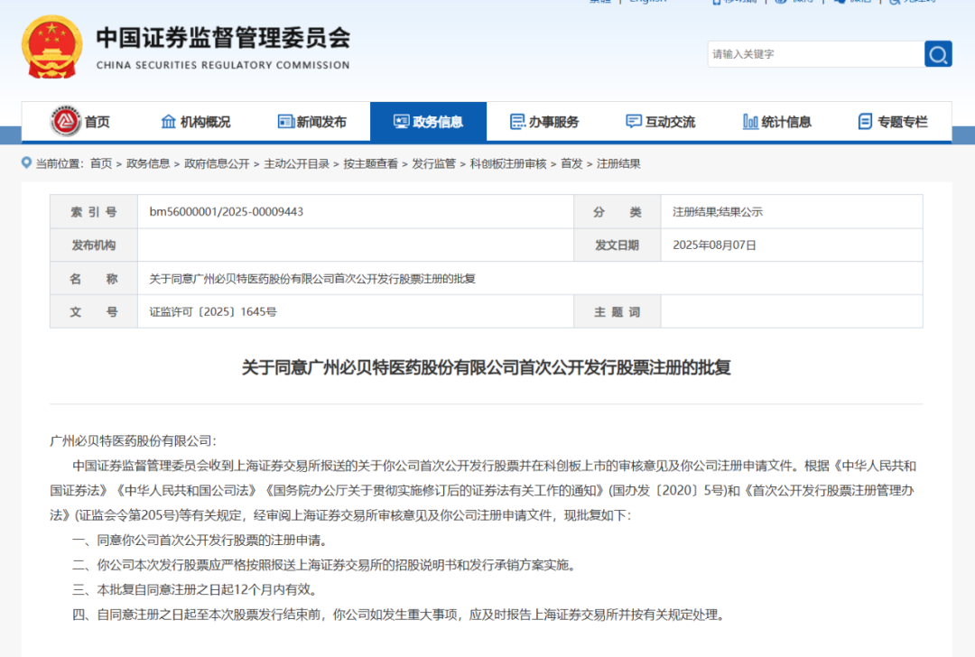 日前,证监会核发了广州必贝特医药股份有限公司(下称“必贝特”)科创板IPO的批文。意味着又一家选择科创板第五套上市标准的企业成功注册。与其他企业不同的是,必贝特早在2023年就已过会,2023年6月1日提交注册,两年之后的现在才终于拿到IPO批文。